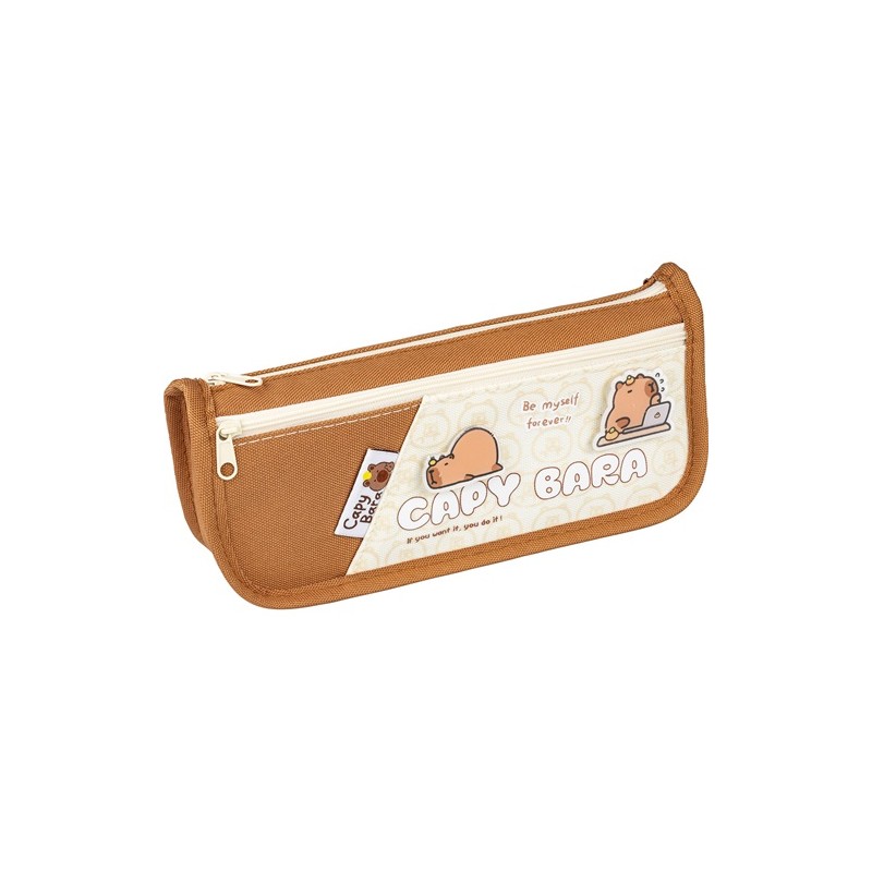 Termékleírás: Ez a Capybara tolltartó kiváló választás mindazoknak, akik egyedi stílust keresnek az iskolai kellékeik számára. A tolltartó barna poliészter anyagból készült, amely tartósságot és könnyű tisztítást biztosít. Az elején egy aranyos capybara rajz és a "Capybara" felirat szerepel, így garantáltan mosolyt csal mindenki arcára.
